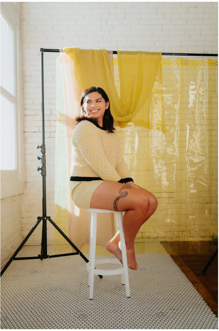 We’ve also invited two equally awe-inspiring people to model our knits for you this season. Angel Joy Flores and Alicia Roth Weigel are both activists who work towards a more equitable world for the LGBTQIA+ community in Texas and beyond. More than ever, representation of trans and intersex people is vital and we were honoured to work with them.