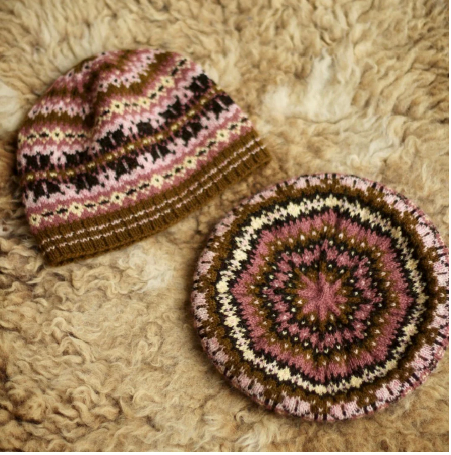 Yöl Moorie is the 2024 Holiday Hat design from Simply Shetland using Jamieson's of Shetland Sprindrift Yarn. The Yöl Moorie features Shetland-inspired colorwork in a warm festive palette and comes with instructions for a beret and a beanie. What a bonus that both can be made from the 5 balls in the kit by swapping the color placement!!