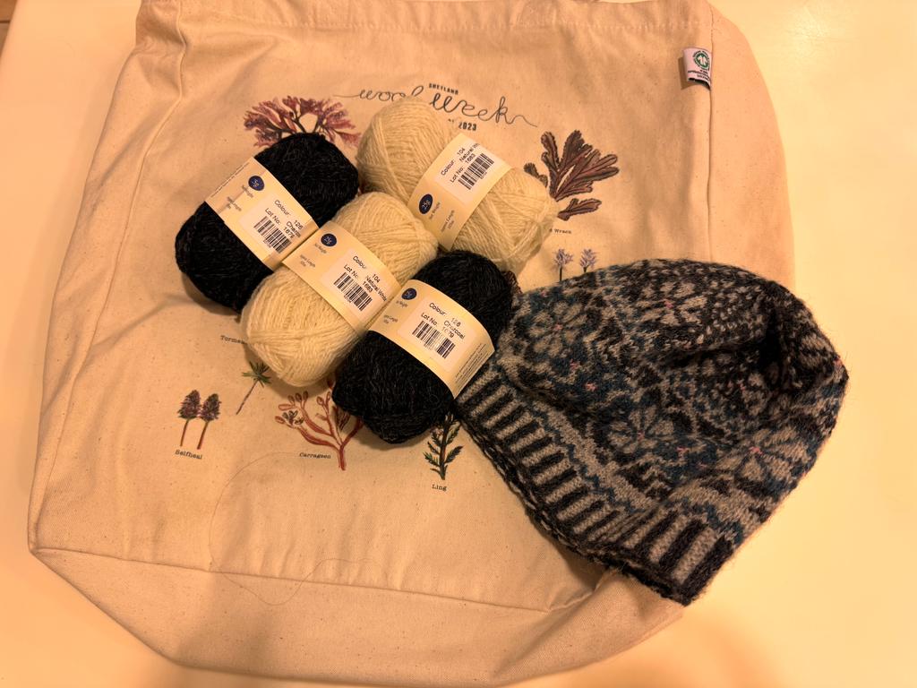 The official 2023 Shetland Wool Week knitting pattern the ‘Buggiflooer Beanie’ has been exclusively designed by our patron Alison Rendall